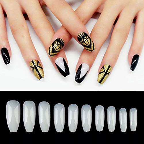 Sethexy Bara Unghie finte 500 pezzi 10Sizes Ballerina Premi sulle unghie Acrilico Copertura completa Suggerimenti per unghie finte Per Arte Nail Design (Naturale)