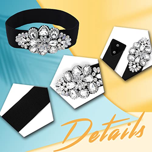 Sethexy Cintura elasticizzata nera da donna Strass Cinture larghe a fiori Cristallo Cintura Cinch cintura per vestito (Nero, L)