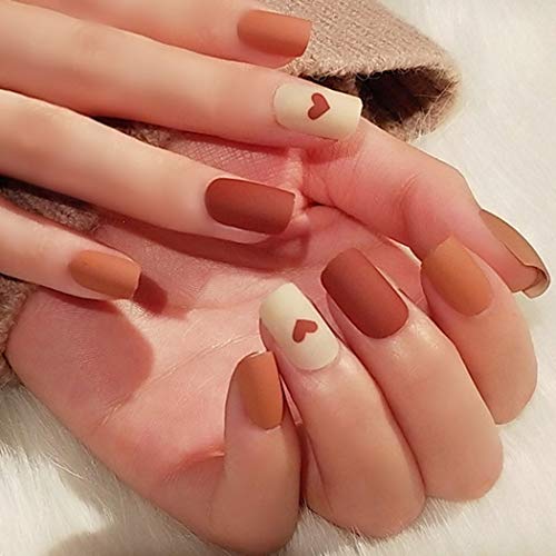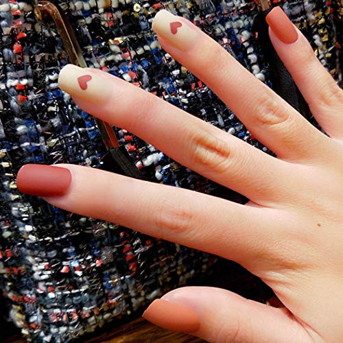 Sethexy 24X Matte Piazza Unghie finte Jump-Colore A forma di cuore medio Arte di copertina completa Suggerimenti per unghie finte per Donne e Ragazze