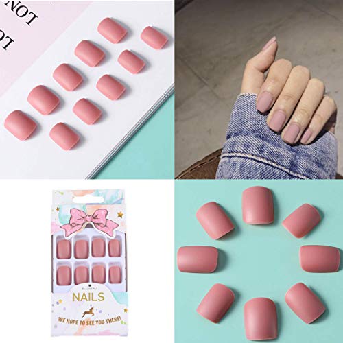 Sethexy Opaco Corto Unghie finte Piazza Puro Rosa 24 pezzi Copertura completa Acrilico Premere su Suggerimenti per unghie finte per Donne e Ragazze