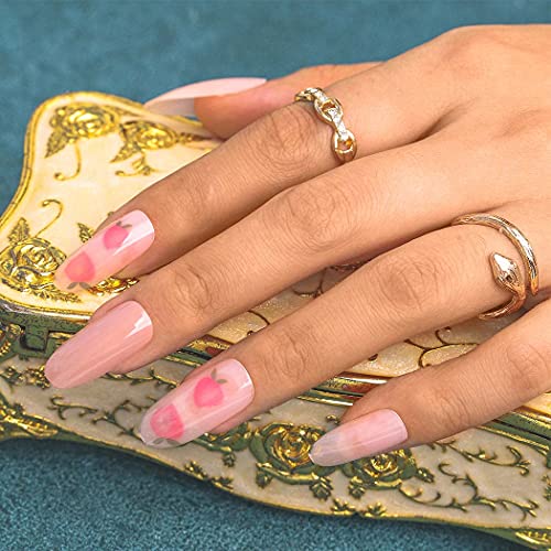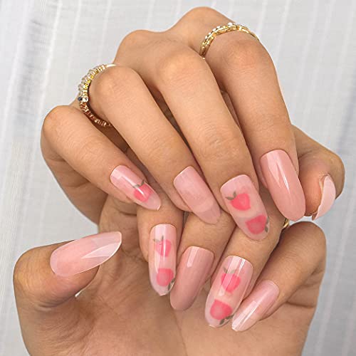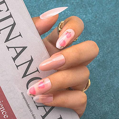 Sethexy Lungo Ovale Unghie finte Rosa Unghie finte pesca Ballerina Attacca le unghie Lucido Chiodi con colla 24 Pz Acrilico Arte Punte per unghie a pressione per donne e ragazze