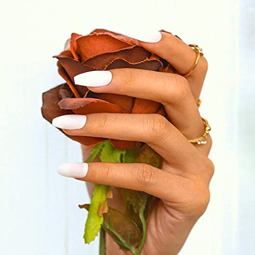 Sethexy 24 pezzi Matte Ballerina Puro Colore Unghie finte Bara Copertura completa medio Acrilico Consigli per unghie artistiche per Donne e Ragazze (Bianca)