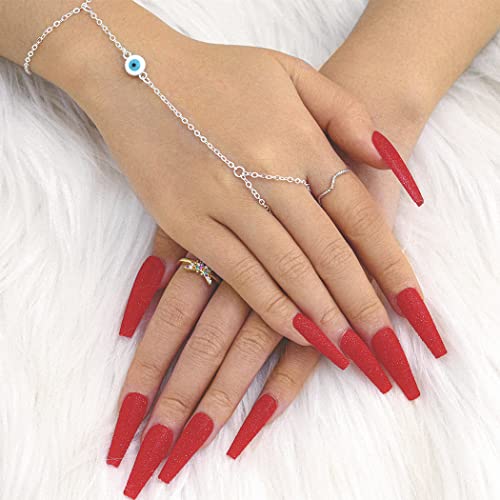 Sethexy Lungo rosso False unghie Bara Ballerina Unghie finte Opaco Luccichio Attacca le unghie 24 Pezzi Acrilico Art Punte per unghie a pressione per donne e ragazze
