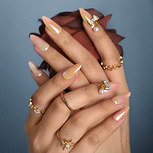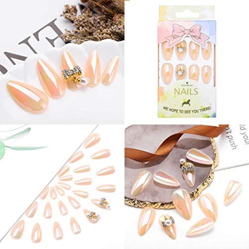 Sethexy Lungo Unghia falsa Stiletto Unghie finte Lucido Glitter Attacca le unghie 24 Pz Acrilico Arte Bowknot Punte per unghie a pressione per donne e ragazze