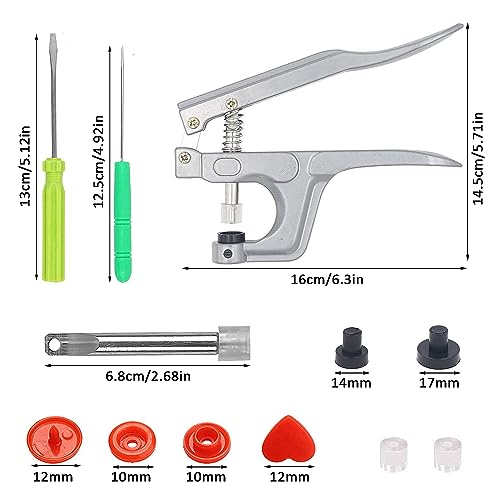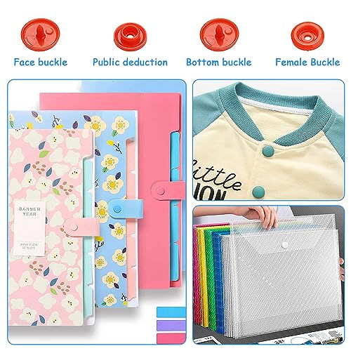 Kit completo: 600 bottoni a pressione in plastica T5 in 15 colori, 1 pinze in metallo, 1 guaina in gomma, 1 base, 1 asta in metallo, 1 punteruolo, 1 cacciavite e 1 scatole per riporre il tutto. Per i tuoi progetti di cucito e maglia.