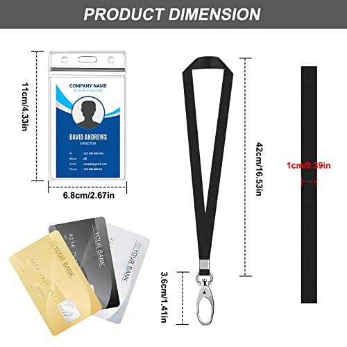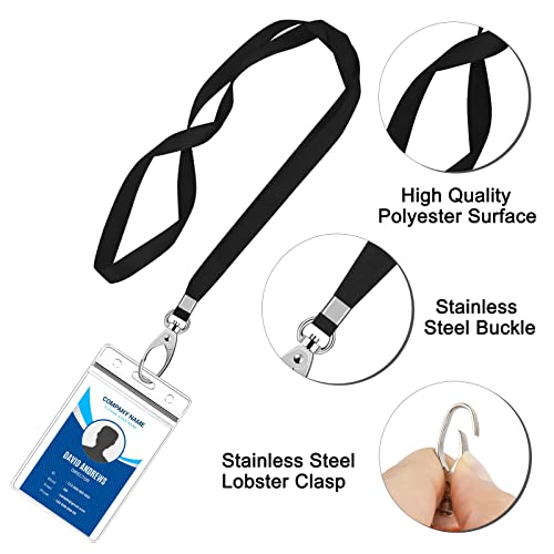 10 Sets Porta Badge da Collo, Impermeabile Trasparente ID Carte Porta Badge e Nylon Cordino con Gancio Girevole, Titolari di Badge con Cordini per Esposizione Ufficio Scuola (Nero, Verticale)