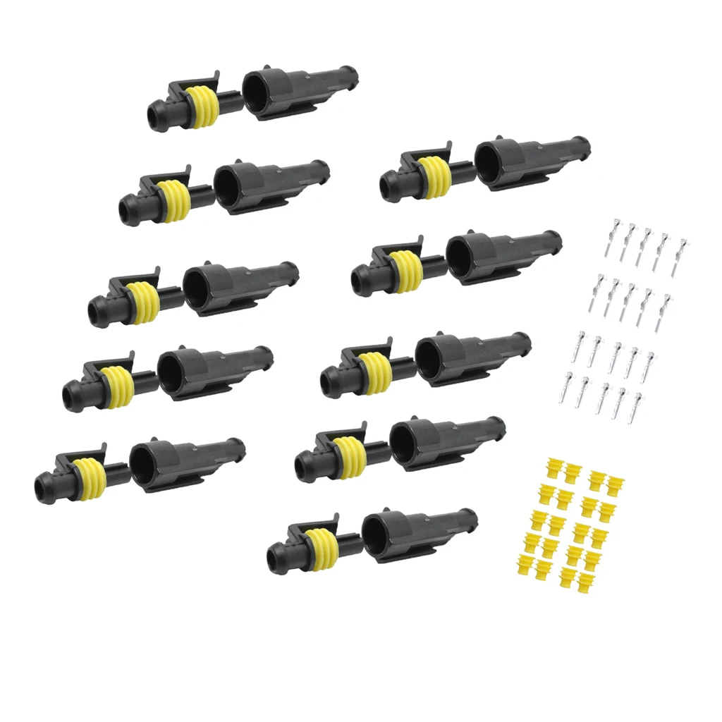 10 Sets 1 Pin Sealed Waterproof Electrical Wire Connector Plug Marine Car Motorcycle Boat Truck
