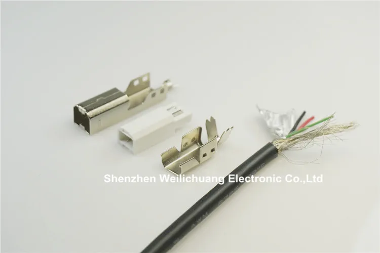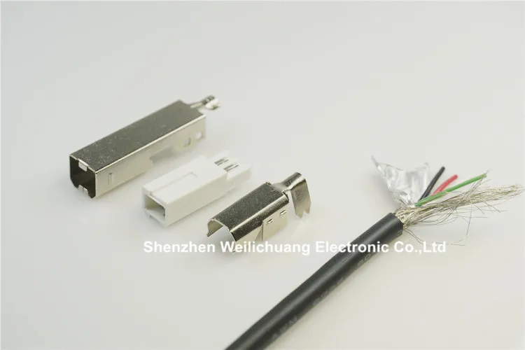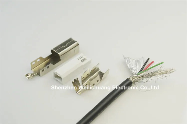 10 sets DIY USB 2.0 B type Male plug Adapter Connector Socket plus 1 meter UL2725 24 AWG / 1P 28 AWG / 2C conductor Copper braid