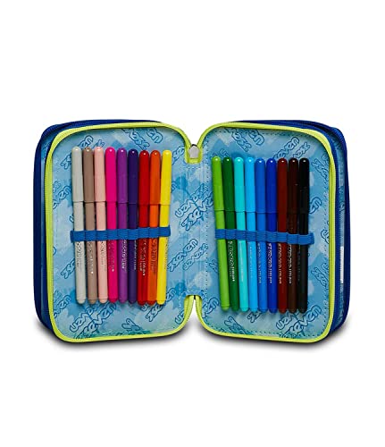 Seven Astuccio 3 Zip,FLUO BELTS, Attrezzato con Matite, Pennarelli Ecc. - Verde, Scuola & Tempo Libero