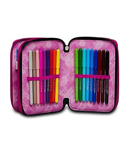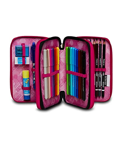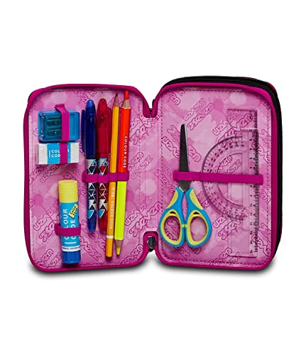 Seven Astuccio 3 Zip, KIDDIE CRUSH, Attrezzato con Matite, Pennarelli Ecc. - Fucsia - Scuola & Tempo Libero