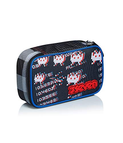 SEVEN Astuccio Quick Case SPACE CHECK, Nero, Con contenuto per la scuola: penne, matite