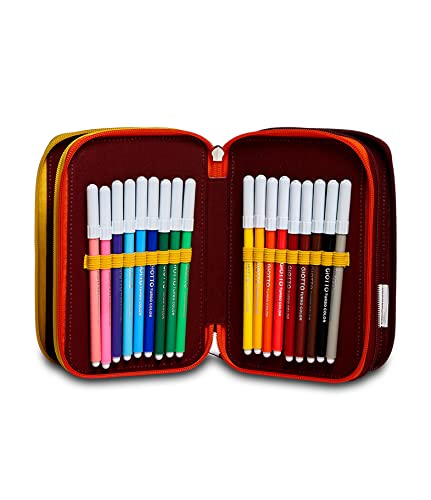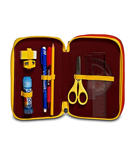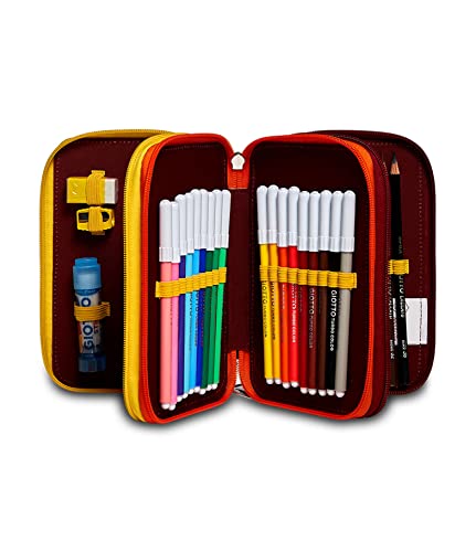 Seven S.P.A. Astuccio 3 Zip a .S. Roma Calcio, Giallo Rosso, Completo Di Matite, Pennarelli, Scuola 3 Scomparti