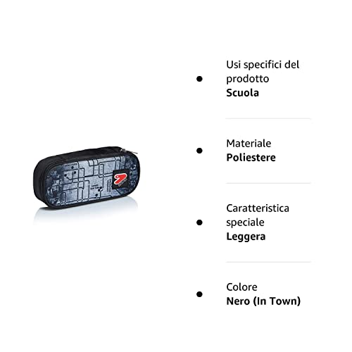 Seven Bustina Ovale, Con Organizer interno porta penne, Scuola & Tempo Libero, Portapenne, Bambini e Ragazzi, Nero (In Town)