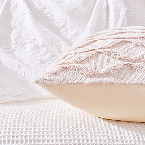 SEVEN HITECH Federe Cuscini Boho per Divano in Velluto 45x45cm Fodere per Cuscino Decorative Rettangolari Trapuntato Federa con Cerniera Nascosta per Soggiorno Camera da Letto 2 Pezzi Beige