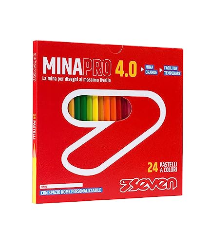 Seven Set Matite Colorate - Scatola da 24 pz - Confezione Pastelli Scuola, Ufficio - MINA 4.0 - Spazio Etichetta Nome