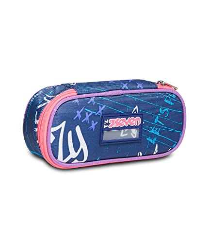 SEVEN S. P. A. Portapenne Round Plus SEVEN, ROCK ON GIRL, Blu, Scuola & Tempo Libero