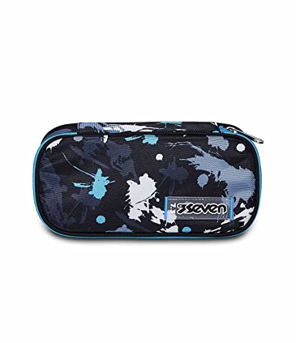 Seven Portapenne Scuola ROUND PLUS BIG - HUE STAINS - Astuccio Monozip con Organizer Interno, Passanti Elastici - Tessuto 100% Eco-Material