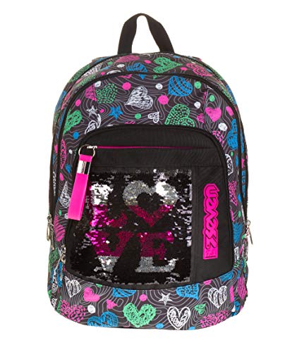 SEVEN Zaino scuola advanced SHINEHEART - Nero - 30 LT - Paillettes reversibili - Inserti rifrangenti