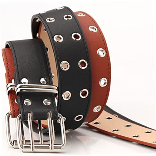 Sevennine Doppio cinghia di gommini in pelle PU regolabile in pelle a 2 buche con fibbia per pantaloni, larga cintura, Nero, Taglia unica