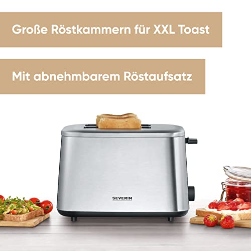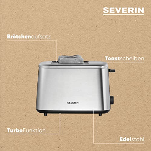 SEVERIN AT 2513 - Tostapane turbo, in acciaio INOX di alta qualità, con grandi camere di tostatura e potenza 1600 W, in acciaio INOX spazzolato/nero