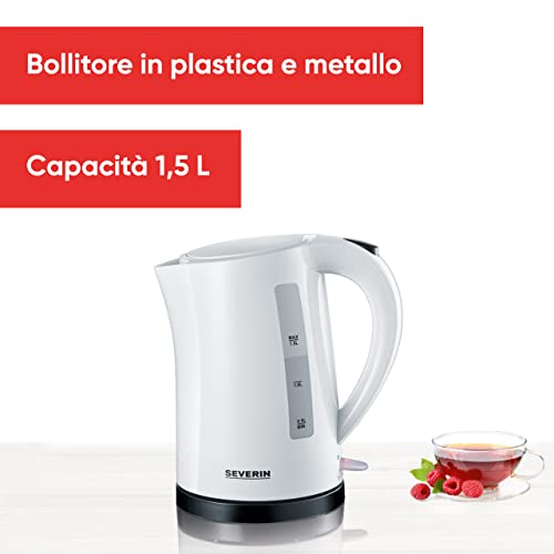 SEVERIN WK 3494 Bollitore per acqua 2200W in plastica e metallo, Teiera elettrica con capacità da 1,5 litri, Bollitore acqua elettrico con indicatore del livello dell'acqua, Bianco