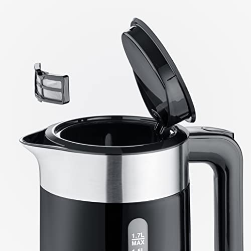 SEVERIN WK 9265 Bollitore per acqua da 2200 W in acciaio inossidabile, Teiera elettrica da 1,7 litri, Bollitore acqua elettrico con filtro estraibile, Acciaio Inox/nero