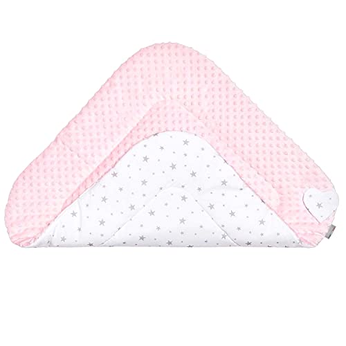 Sevira Kids - Sacco nanna, invernale, per neonato, multiuso, 100% cotone, tessuto Mincky reversibile, regalo per la nascita, colore rosa con motivo stella, 80 x 80 cm