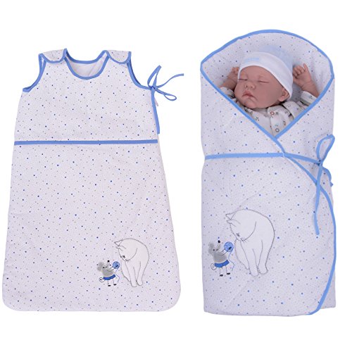 Sevira Kids - Sacco nanna leggera estate - 100% cotone certificato - Insieme a dir 1 - Diversi colori - Sweety Bleu, 86/92 cm