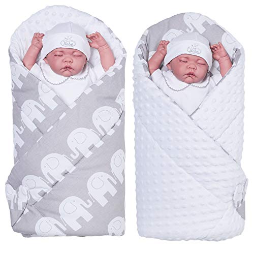 Sevira Kids - Sacco nanna multiuso, misura nascita, nido d'ape, Minky, reversibile, disponibile in vari colori grigio Éléphant Gris Dalla nascita - 3/4 mesi circa (80x80 cm)