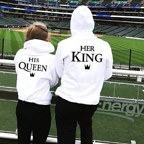 Sevpuikl Her King His Queen Couples Felpa con Cappuccio per Uomo Donna King Queen Pullover a Maniche Lunghe con Tasche Regalo di San Valentino Nero Bianco Grigio 1PC(Bianco-King-M)