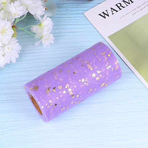 SEWACC Nastro Moda Paillettes Tessuto per Nastri Cucito Decorazioni Web Artigianato Pizzo Casa Fiocco Paillettes Dorata Maglia Motivo a Stella Tulle con Scrivania Luce Lavanda