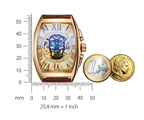 Sewor uomo cranio testa meccanico automatico orologio da polso con fascia in vetro rivestimento (Oro & Bianca)
