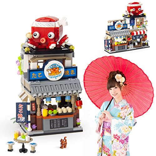 Seyaom Giapponese Street View Shop Mattoni, Mini Building Block fai da te Modello MOC Giocattolo da costruzione, regali per bambini/adolescenti/adulti (negozio di Takoyaki)