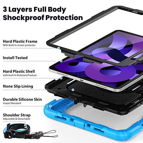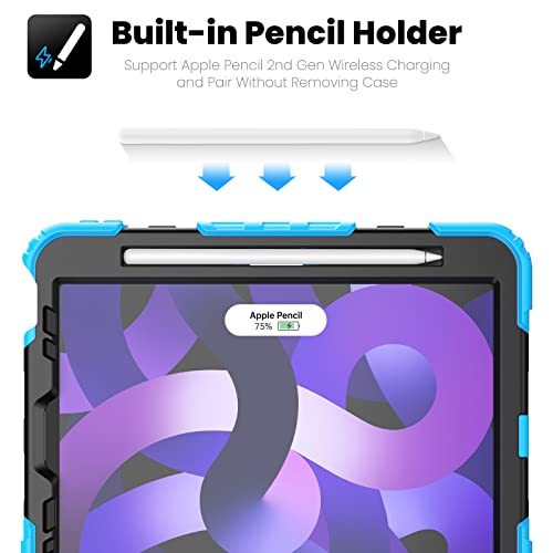 SEYMAC Cover per iPad Air 5a/4a Generazione 2022/2020 10,9 Pollici, iPad Pro 11 2021/2020/2018 Custodia con Protezione Dello Schermo, Cinghia Girevole/Supporto, Tracolla, Portapenne, Azzurro