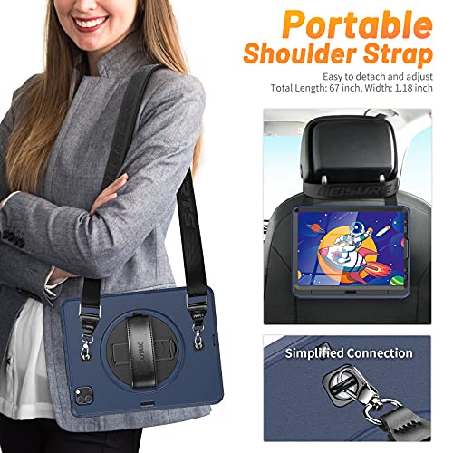la tracolla è anche regolabile, sicura e comoda da usare con una mano in riunione o in classe o in attività all'aperto. Viene fornito con una tracolla regolabile, in modo da poter portare il tuo iPad sul collo o sulla spalla come una borsa, o metterlo sul poggiatesta dell'auto.