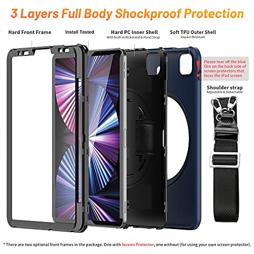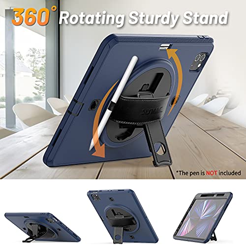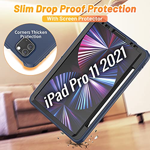 SEYMAC - Custodia per iPad Pro 11 2021/2020/2018, custodia per iPad Air 4 2020, sottile, antiurto, con pellicola protettiva per schermo, porta matite per iPad Pro da 11", colore: blu navy