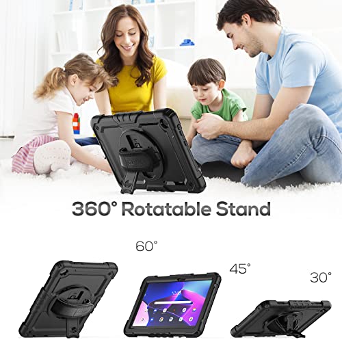 SEYMAC Custodia per Lenovo Tab M10 3rd Gen 10,1 pollici 2022, Lenovo Tab M10 Custodia antiurto con pellicola protettiva per lo schermo, supporto girevole a 360° e cinturino da polso, tracolla, nero