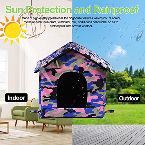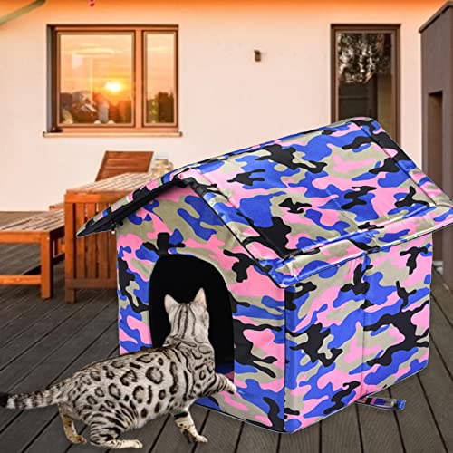 Sfadf, Cuccia per gatti da esterno, impermeabile, per gatti, canini di taglia piccola, media, Mimetico rosa S