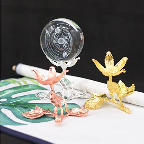 Sfera di cristallo trasparente con supporto dorato, sculture in metallo fatte a mano, arte di ferro, ufficio, soggiorno (Rose Silver)