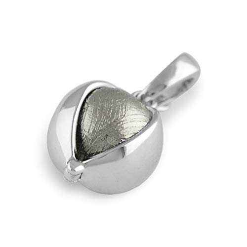 Un ciondolo forgiato a mano proveniente da un altro mondo, una vera stella cadente lucidata in forma sferica e come ciondolo in argento sterling 925 con cerniera per rimuovere il meteorite
