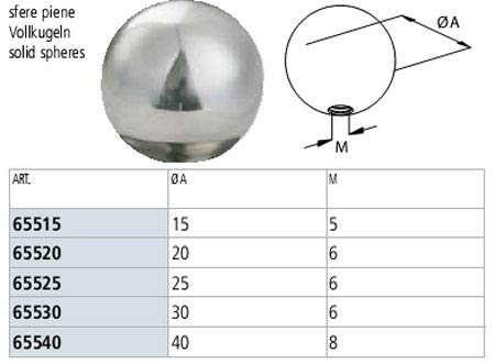 SFERA PIENA INOX AISI 304, CON FORO CIECO FILETTATO - MISURA mm 30