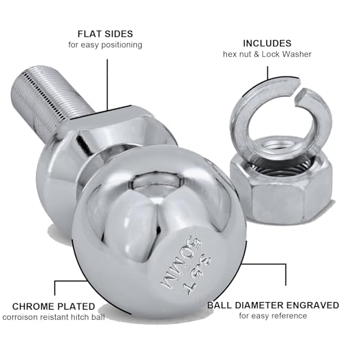 Forte trazione: con una forza di trazione nominale fino a 3,5 tonnellate (7.700 lbs) di peso lordo del rimorchio, questa sfera di traino tira bene e offre affidabilità durante il traino di un veicolo. La sfera del gancio di traino ha un diametro di 50 mm/2 pollici, il diametro del bullone è di 22 mm/0,87 pollici.