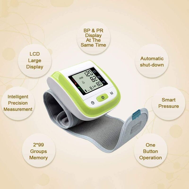 Misuratore elettronico della pressione sanguigna da polso, misurazione del dollaro/metodo oscillometrico, misurazione con un solo pulsante, monitoraggio della frequenza cardiaca, fascia da braccio comoda, caratteri grandi a schermo grande, pressione intelligente, misurazione accurata, piccola e raffinata, facile da trasportare < li>99 serie di risultati di misurazione in memoria per due persone, in grado di visualizzare la lettura media delle ultime 3 misurazioni, conveniente per gli utenti per recuperare il confronto dei dati La classificazione dello sfigmomanometro dell'OMS indica lo stato di salute della pressione sanguigna, il che è conveniente per consentire all'utente di determinare con precisione se la pressione sanguigna è normale. Display LCD digitale a cristalli liquidi, i risultati mostrano alta pressione/bassa pressione/impulso, schermo grande, caratteri grandi, lettura chiara, pressione e decompressione automatiche, Rilevamento della frequenza cardiaca IHB Spegnimento