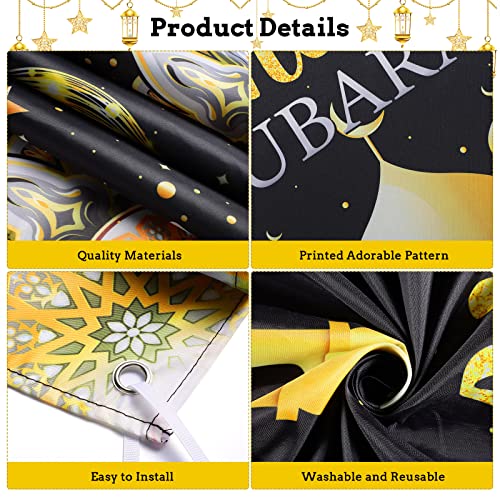 Materiale di qualità: lo sfondo Mubarak per decorazioni della casa sono realizzate in tessuto di poliestere di qualità, che è durevole, affidabile e robusto, non facile da sbiadire o danneggiare, può essere applicato come regalo a familiari, amici, può anche essere lavato e risparmiato decorazione del prossimo anno nella festa di Eid Mubarak, che è la scelta ideale per la tua festa del Ramadan