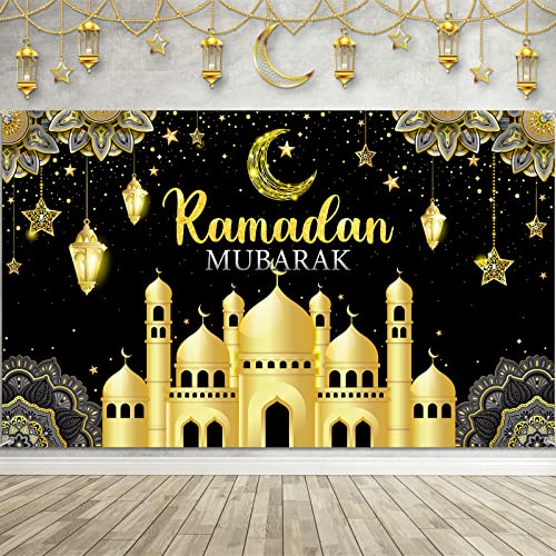 Sfondo del Feste Ramadan Banner Fondale Eid Mubarak in Tessuto Decorazione di Celebrazione di Eid al-Fitr Sfondo Striscione del Musulmano Sfondo Fotografico Kareem per Casa (Nero)