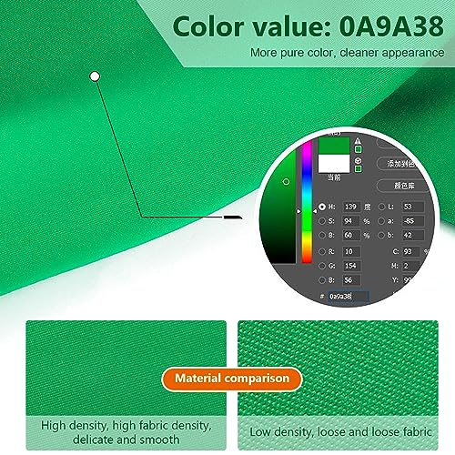 Materiali di alta qualità: Sfondo fotografico realizzato in mussola pura al 100%, schermo verde di qualità superiore con elevata solidità del colore, nessuna deviazione di colore e non riflettente. Facile da montare e da ripiegare, migliore senso verticale e durevole.