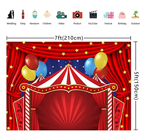 Sfondo fotografico, motivo: tendone del circo e giostra, colore: rosso, decorazione per baby shower e feste di compleanno