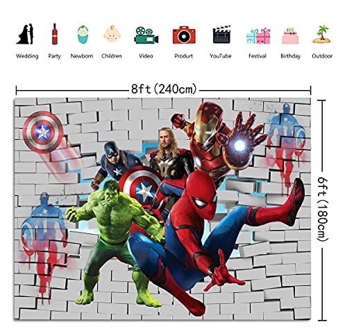 Sfondo fotografico a tema Superman supereroe con mattoni bianchi per ragazzi e bambini, festa di compleanno
