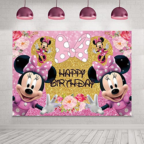 LXN Sfondo Glitter Mouse Rosa 6x4ft con Tovaglia Mouse 180x108cm Forniture Decorazione Festa di Compleanno per Ragazze Decorazione Tavolo Torta Sfondo Tovaglia Usa E Getta