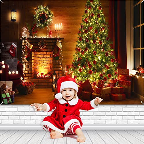 Sfondo di Natale per Immagini 72 x 43 Pollici Sfondo del Camino di Muro di Natale Fondale Natalizio in Tessuto Morbido e Affidabile Sfondo di Natale del Camino per Natale Banner Studio Prop